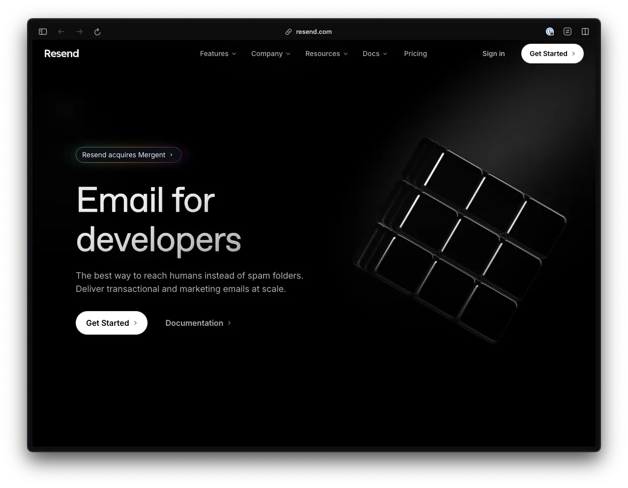 Go to Resend and click on Get Started to create an account.