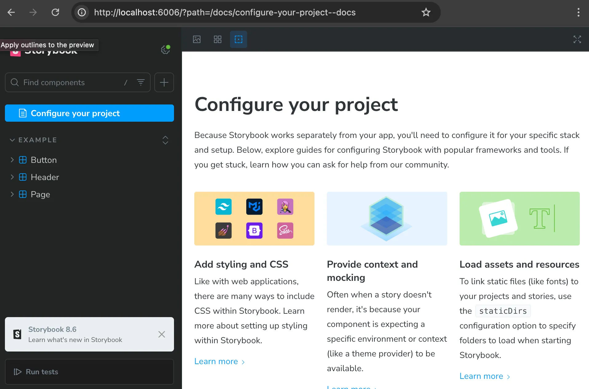 4. Storybook will finish installing, and then start our Storybook server: